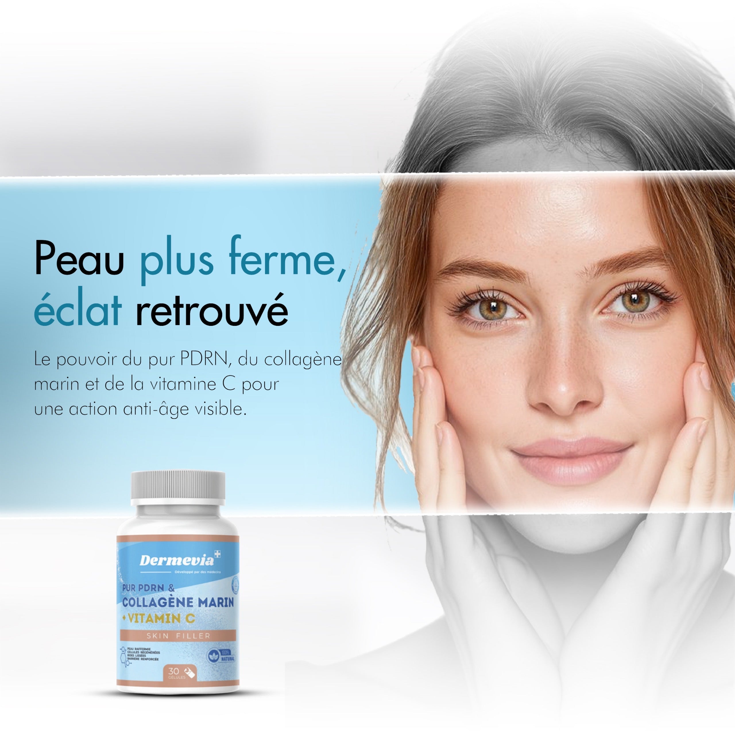 Grâce au PDRN et au collagène marin, votre peau se régénère et retrouve son éclat lumineux